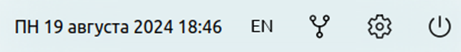 В правом верхнем углу экрана есть кнопки для смены языка, настройки сети, перезагрузки и выключения компьютера.