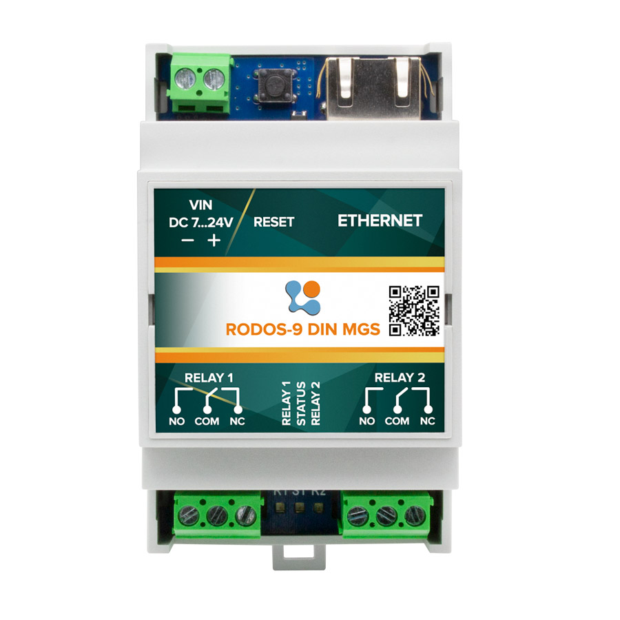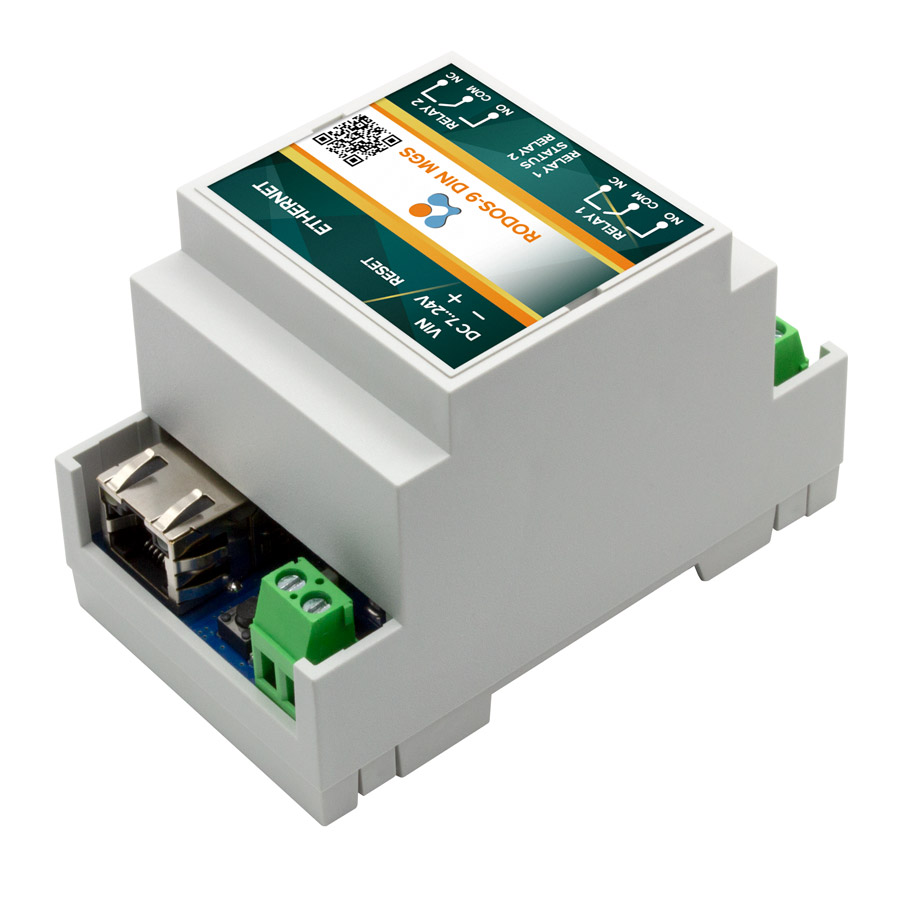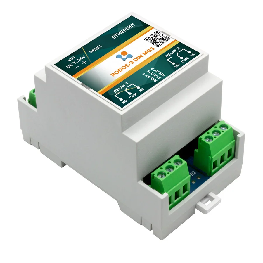 RODOS-9 DIN MGS представляет собой контроллер для коммутации силовых линий постоянного/переменного напряжения, управляемый по IP через сеть Ethernet (IP-реле/интернет-реле/ethernet-реле). На устройстве 2-а встроенных моностабильных электромеханических реле типа 1С "перекидной контакт".