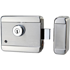 Электро-механический замок моторного типа, накладной, универсальный (дверь наружу, внутрь), нержавеющая сталь, 12В.