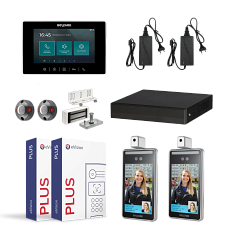 В состав комплекта входят два IP-терминала, с помощью которых будет осуществляться "доступ по лицу" и учет рабочего времени. Обрабатываться будут два видеопотока. Одна лицензия eVision обрабатывает 1 видеопоток.