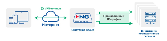 КриптоПро NGate – это универсальный криптографический шлюз удаленного доступа и VPN, объединяющий в себе четыре сценария применения: